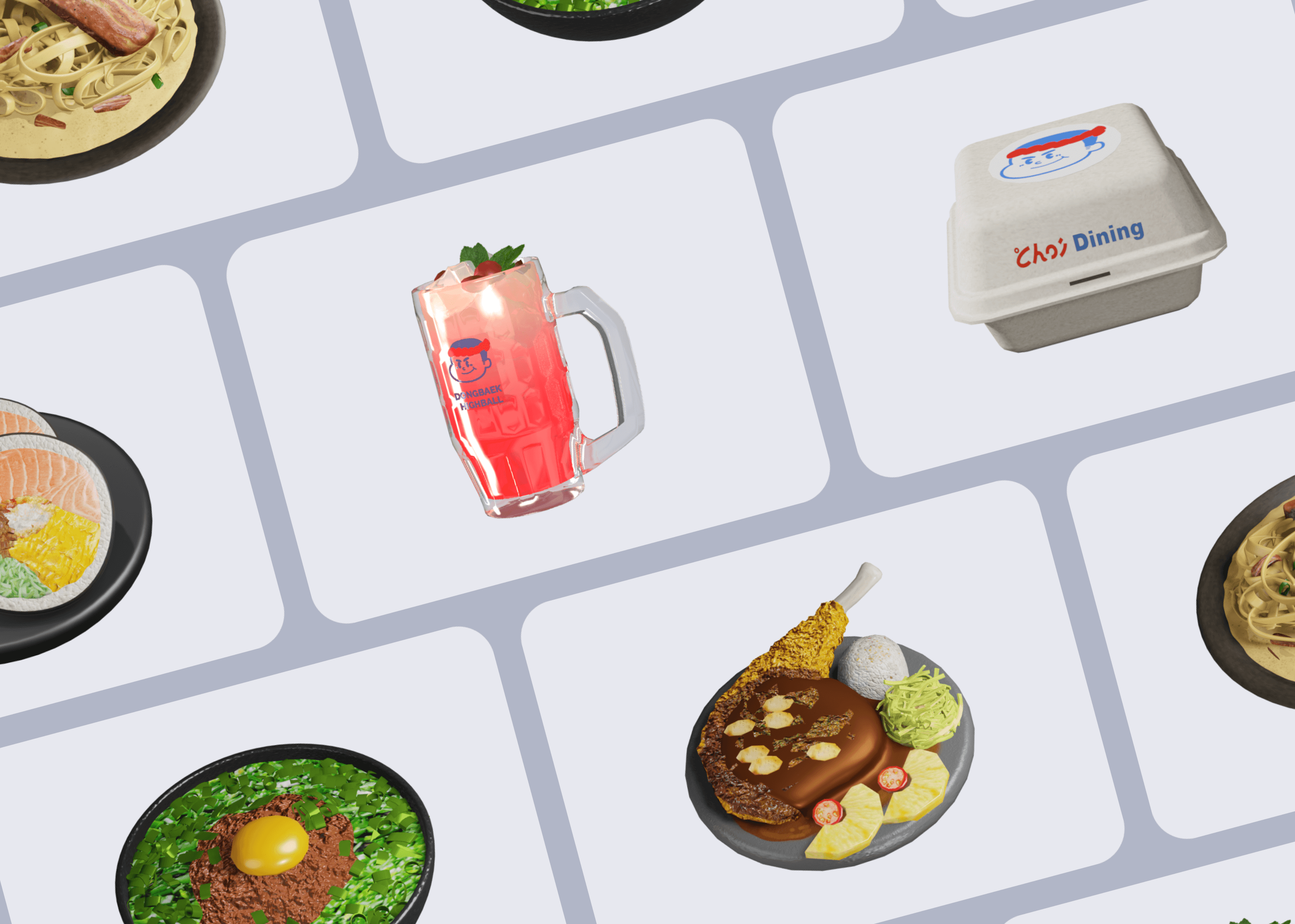 초이다이닝 ‘스피드매치’는 실제 메뉴를 기반으로 제작한 3D 모델을 활용한 게이미피케이션 콘텐츠입니다. 음식의 형태와 질감을 살린 3D 표현을 통해, 브랜드와 경험의 연결성을 높였으며 즐겁게 기억되는 디지털 경험을 제공했습니다.