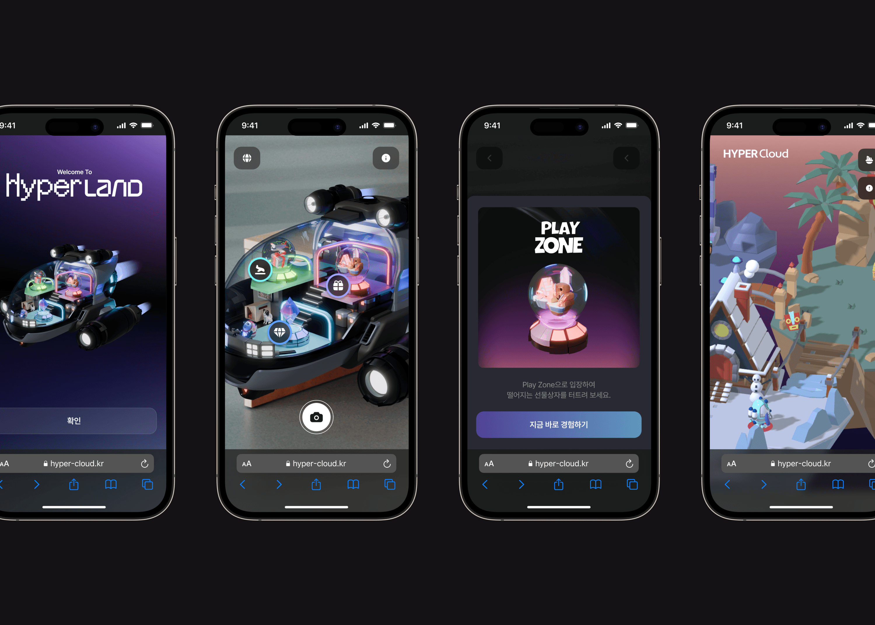 Hyper Land는 하이퍼클라우드가 그동안 제작해 온 다양한 AR 콘텐츠를 한 공간에 모아 경험할 수 있도록 기획된 WebXR 체험 콘텐츠입니다. 메타버스 엑스포 현장에서는 3D로 모델링된 ‘하이퍼랜드’를 증강현실로 구현해, 관람객들이 자연스럽게 콘텐츠를 탐색하고 체험할 수 있는 매개체로 활용했습니다. 단순한 전시를 넘어, 하이퍼클라우드의 기술력과 콘텐츠 스펙트럼을 직관적으로 전달하며 많은 관람객들의 관심을 이끌어냈습니다.